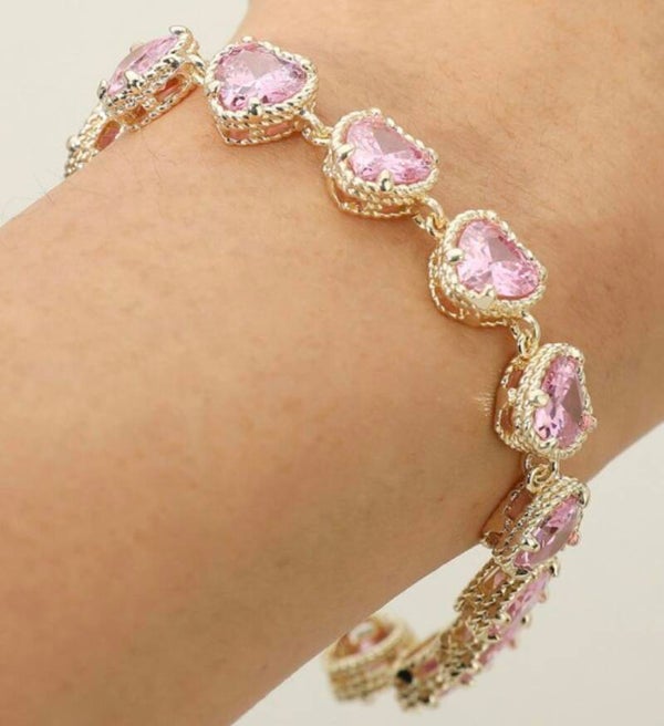 Stunning 14k gold plated heart CZ toggle bracelet! Available in pink or clear cubic zirconia.